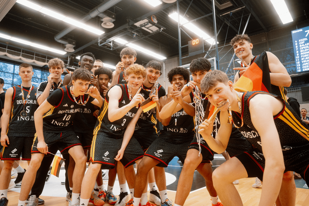 Zu guter Letzt kommen wir bei den Jungen zu unseren ungeschlagenen Gold-Jungs. Bundestrainer Ibrahimagic holt schon zum zweiten Mal eine Goldmedaille beim Albert Schweitzer Turnier (einmal Harald Stein) – was eine Leistung. Aber auch unsere Jungs haben gezeigt, was sie draufhaben. Die Statistiken sprechen nur dafür: beste Mannschaft im Rebounding (53,7 RPG), Assists ( 20,7 APG) und Blocks (4,7 BPG). Angeführt vom Captain und MVP Jamie Edoka (14,4 PTS | 5,6 REB | 3,4 AST | 19,6 EFF) und Top-Scorer Lucai Anderson (15 PTS) kämpfte sich die Mannschaft zielsicher durchs Turnier, dominierte das Finale und holte Gold nach Hause.