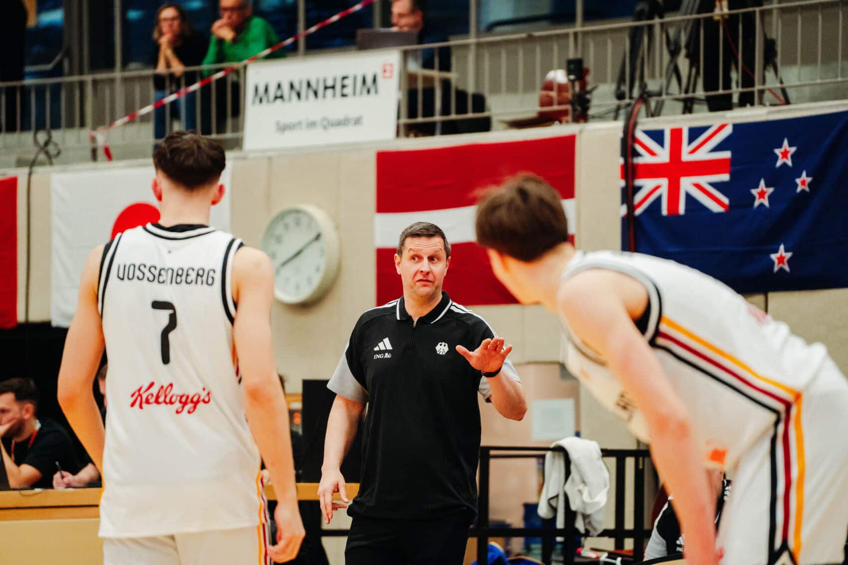The 1,070 fans in the GBG Hall were treated to an entertaining game even after halftime, though there was no real suspense left (69–35, 23rd minute). As a result, a few lapses in concentration started to creep into Germany’s play. Still, it quickly became a question of which German player would score the “donuts” point — breaking the 100 points mark. It took until the 34th minute before Dusan Ilic finally pushed Germany into triple digits.