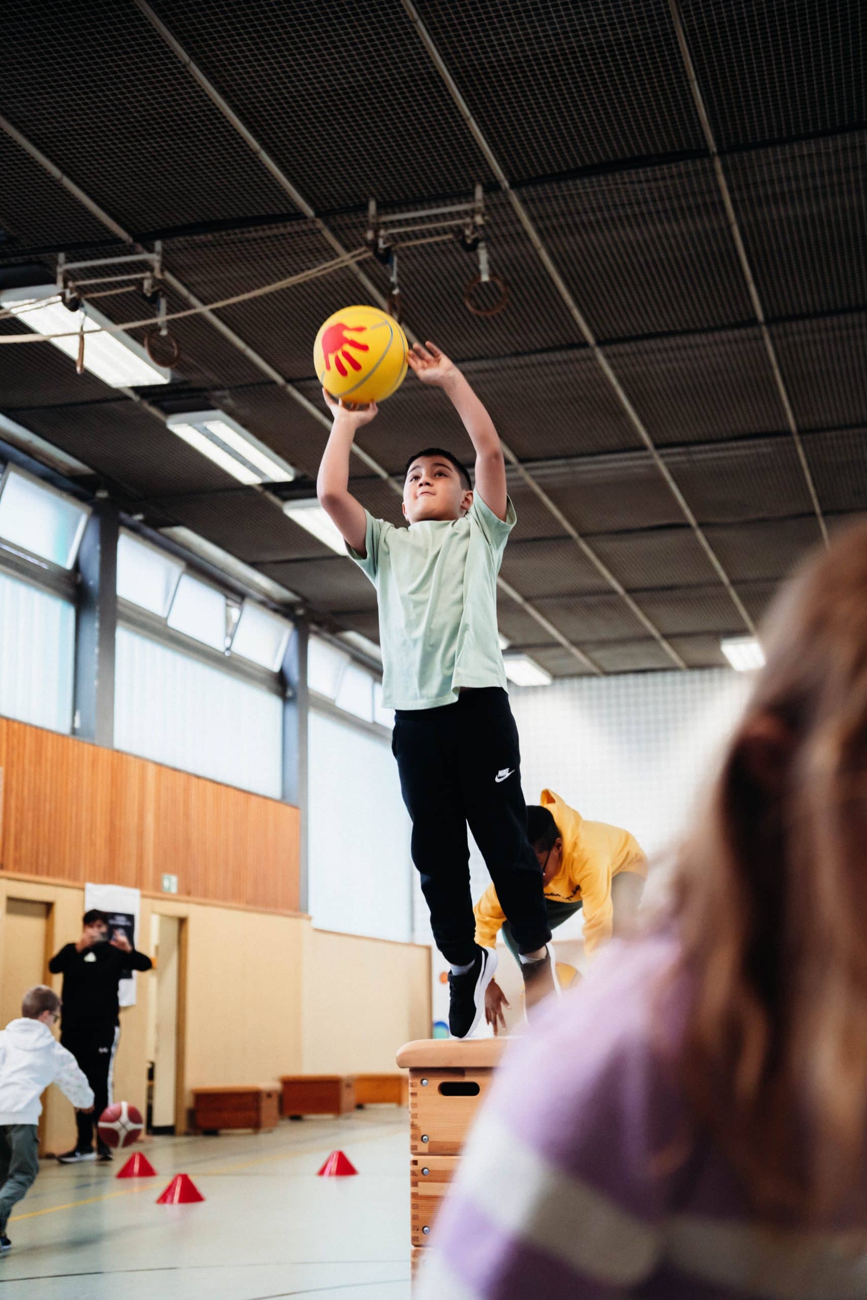 Dank der Organisation durch Herrn Altunsaban, Sportlehrer der Schule, nahmen zahlreiche hochmotivierte Kinder der Klassen 2 bis 4 in vier Gruppen an den Stationen der Grundschulwoche teil. Wegen teilweise fehlender Sportschuhe absolvierten die Kinder den Parcours sogar barfuß – und dank der abwechslungsreichen Aufgaben kam dabei keine Langeweile auf. Wie schon an den vorherigen Standorten war auch hier unser Maskottchen Arnold ein beliebtes Fotomotiv. Mit kleinen Geschenken zum Abschluss der Aktionswoche sorgte er erneut für große Freude.