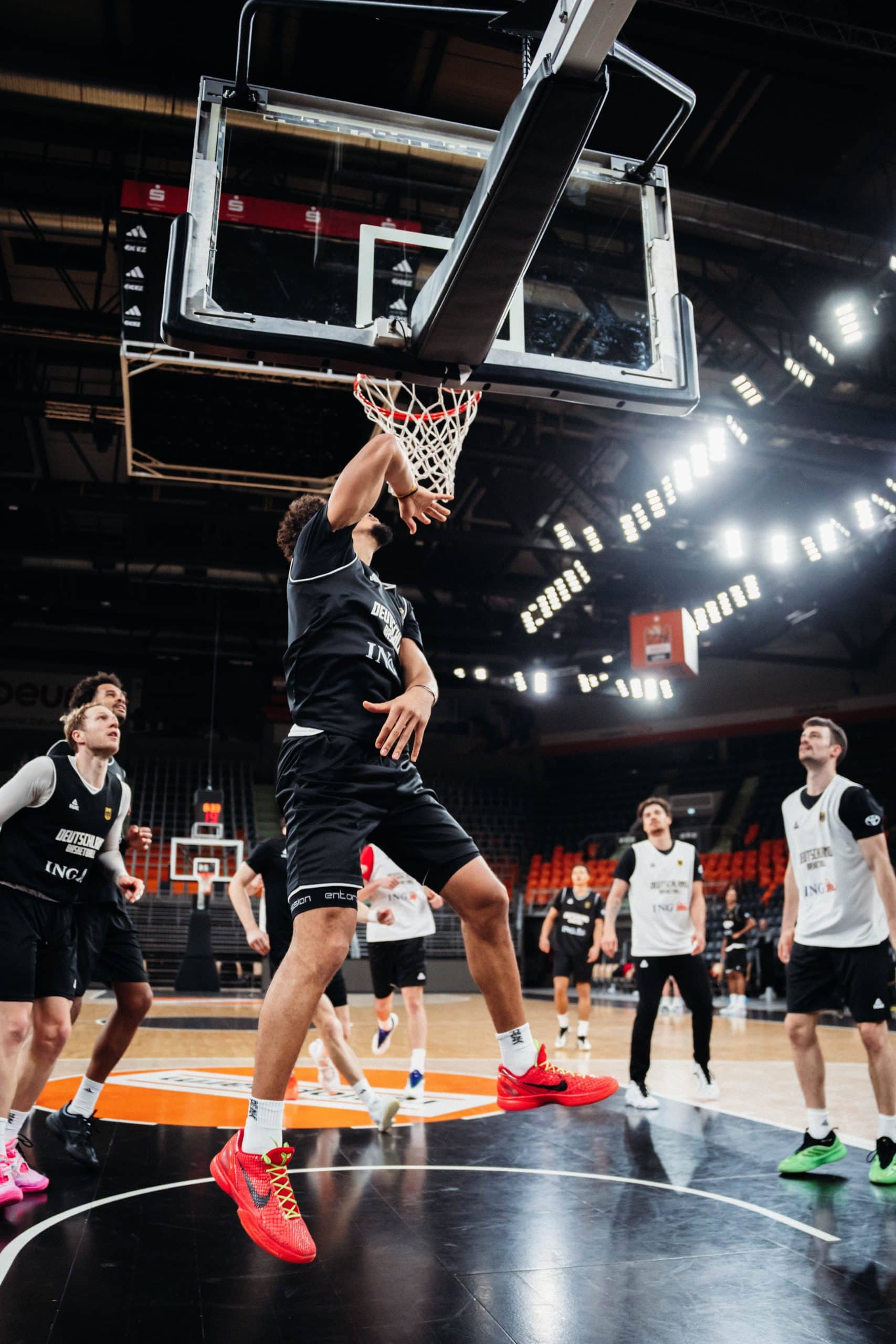 Heute im Training war das deutsche Team erstmals komplett. Es ging weiterhin in erster Linie darum, an der Abstimmung zu arbeiten, die Spielidee zu verinnerlichen und sich mit den Systemen vertraut zu machen. Morgen gibt es noch ein Shootaround, ehe es um 19.30 Uhr vor ausverkaufter Arena ernst wird.