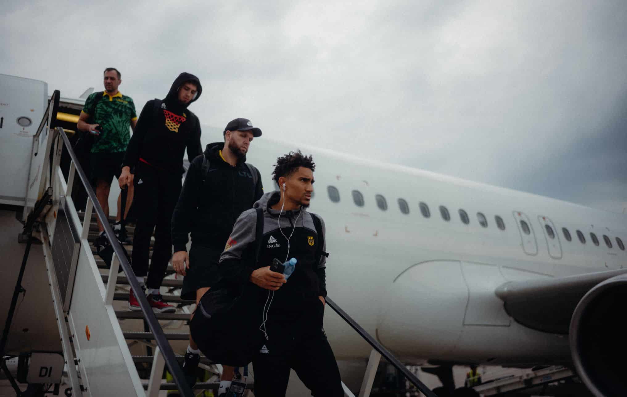 Die deutsche Basketball-Nationalmannschaft der Herren ist zur Finalrunde der FIBA EuroBasket 2022 in Berlin eingetroffen. Zusammen mit den zwei weiteren qualifizierten Teams aus der Gruppenphase in Köln, Frankreich und Litauen (Slowenien reiste per Bahn), ging es um 09.00 Uhr in den Charter-Flieger nach Berlin, wo eine Stunde später die Landung erfolgte und weitere 45 Minuten später im Teamhotel eingecheckt wurde. Am Nachmittag folgte für einige Spieler ein leichtes Wurftraining in der EuroBasket Arena Berlin in der Nähe des Ostbahnhofes. Wir haben wieder einige fotografische Eindrücke des Tages gesammelt.