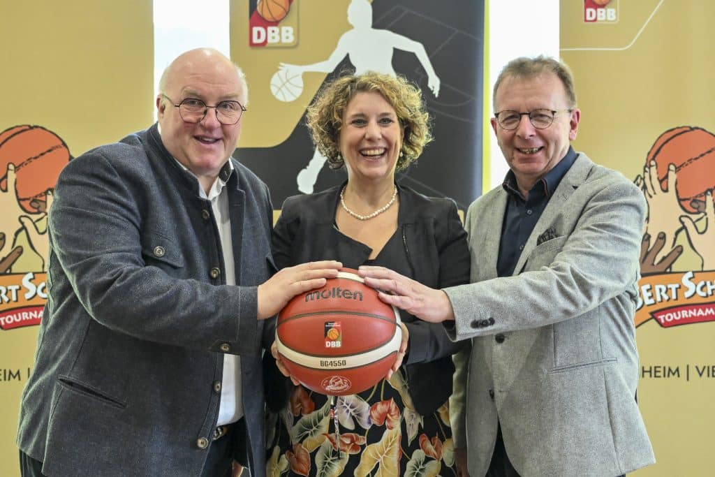 Ingo Weiss, Präsident des Deutschen Basketball Bundes: „Es geht wieder los und das ist gut so. Vielen Dank für die Glückwünsche und an alle Partner und Sponsoren, die das AST möglich machen. Ich darf sagen, dass die Wurzeln unserer erfolgreichen Herren-Mannschaft hier in Mannheim und Viernheim liegen. Insofern gefällt mir der Begriff Talentschmiede, sehr, den ich auf dem Spickzettel der Bürgermeisterin entdeckt habe. Alle Gäste kommen gerne nach Mannheim und Viernheim, auch um einen Blick auf unsere Nachwuchsarbeit zu werfen. Die nächsten Olympischen Spiele in Deutschland werden sehr wahrscheinlich auch von einigen AST-Spielern vom Turnier 2026 gespielt werden. Wir sind in der DBB-Dekade des Frauenbasketballs, daher ist es sehr erfreulich, dass wir dieses Mal auch die U18-Mädchen integrieren können. Das AST hat schon viele – auch politische – Situationen überstanden. Insofern gehe ich davon aus, dass es keine Änderungen mehr am Teilnehmerfeld geben wird.“